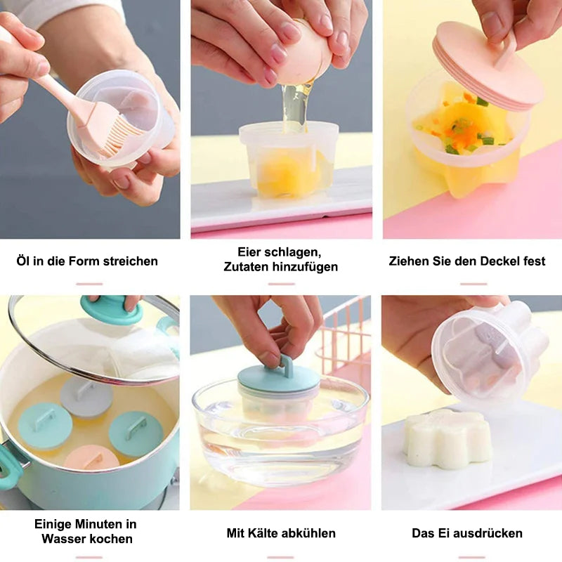 - 1 Set * Niedliche Form für gekochte Eier (4 Formen + 1 Silikonpinsel)