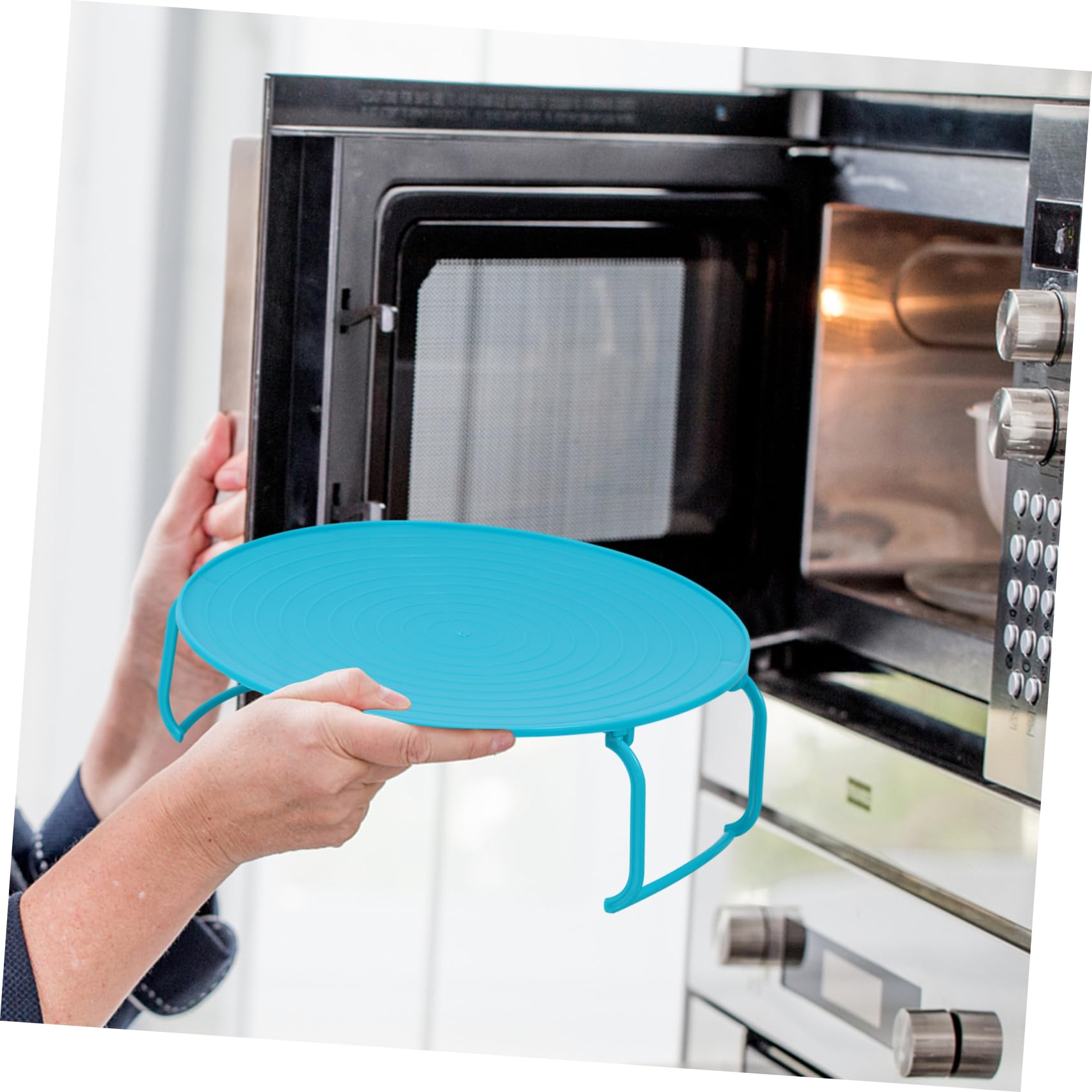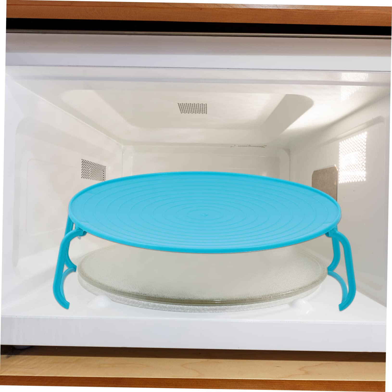 Layered Food Storage Rack-- keep microwave clean -- fold down the handles of the microwave tray and use it to cover foods and splatter. the splatter guard doubles as a steam lid to keep foods moist while messes are contained.